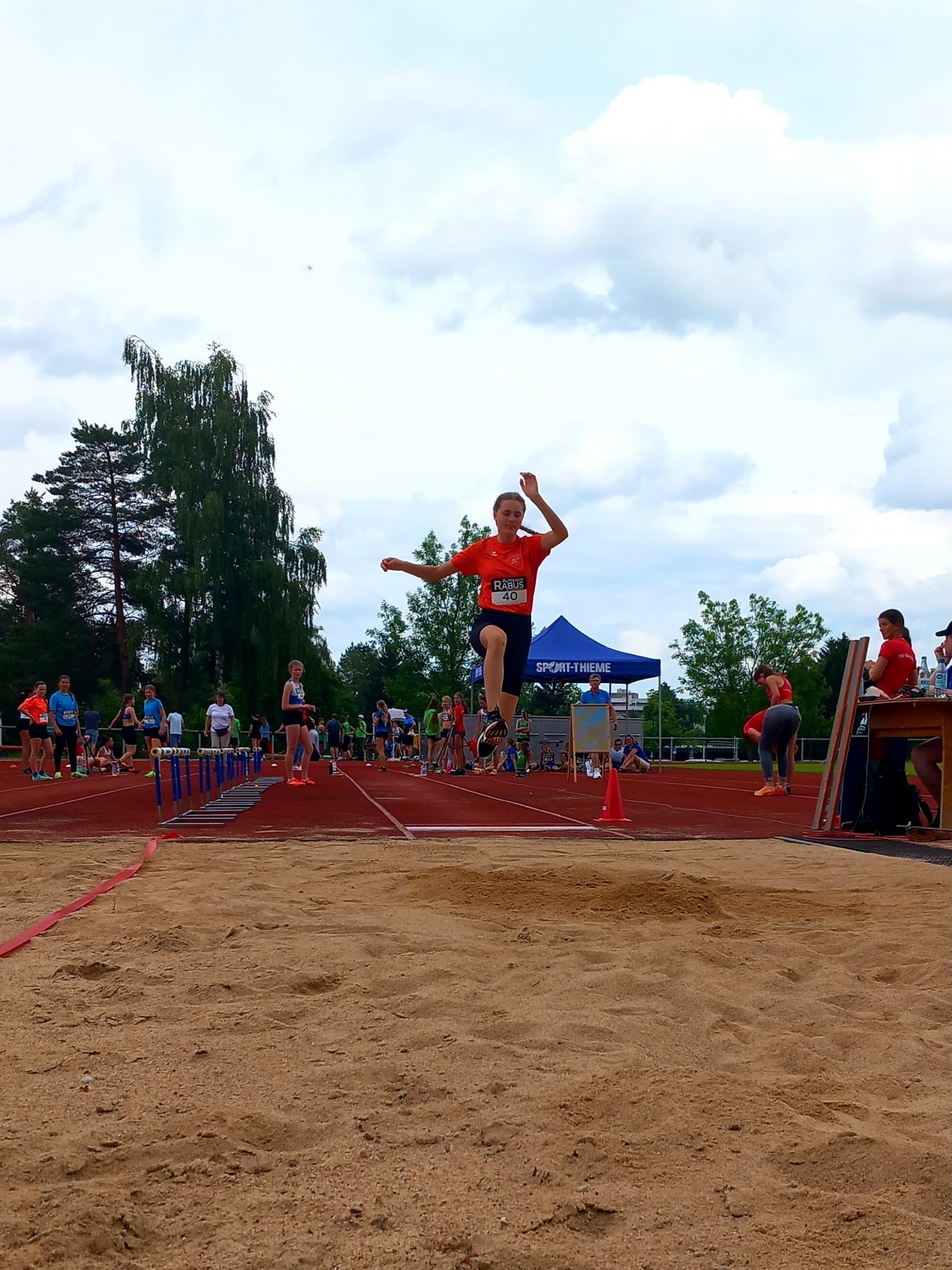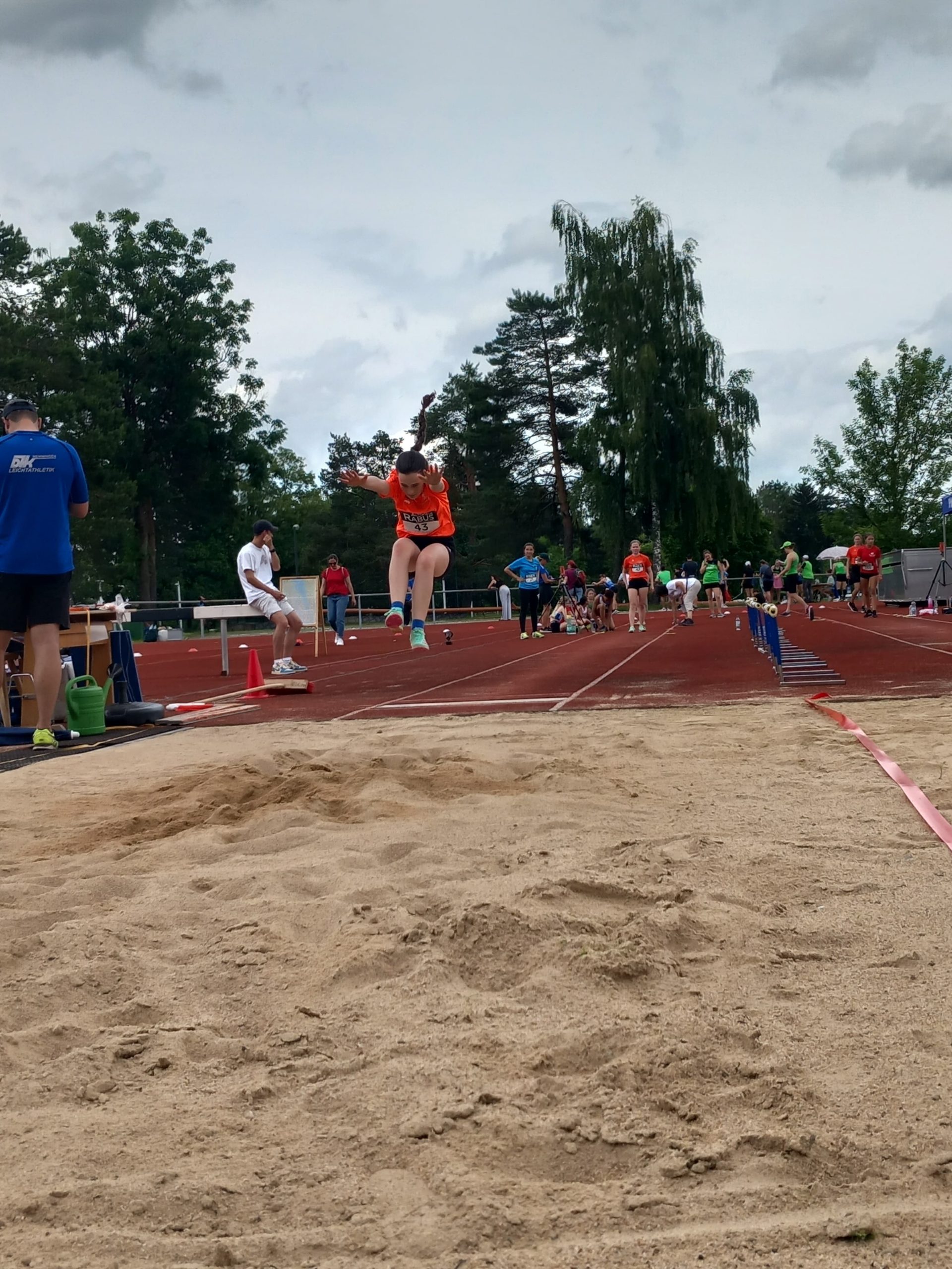 Weiter ging es um 13:40 Uhr mit dem Weitsprung. Philomena sprang mit 3,51m auf den 14. Platz von 28 Teilnehmerinnen. Dahinter Lisa mit 3,43m und Neele mit 3,25m.